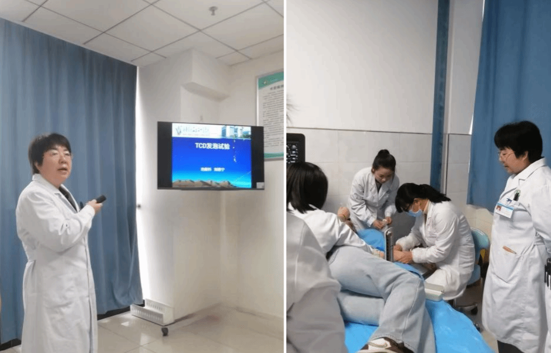 该技术通过静脉注射手震微气泡生理盐水,可清晰显示常规超声难以捕捉的细微血流分流信号。帮扶专家介绍,此项技术对不明原因脑卒中、偏头痛等疾病的诊断敏感性高,检查过程仅需10-20分钟,且具有无辐射、成本低的优势,非常适合在基层医院推广应用。培训中,专家团队通过专题授课细致解析技术原理、适应症及图像判读标准,并采用“示范-指导-独立操作”阶梯式带教模式,帮助学员快速掌握规范操作与临床诊疗思路。