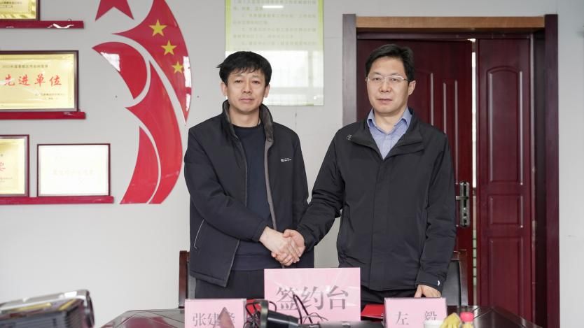 在全体与会人员的共同见证下,陕西省核工业二一五医院党委书记左毅与秦都区人办社区卫生服务中心负责人张建锋代表双方签署《住院医师规范化培训基层实践基地协作协议书》。